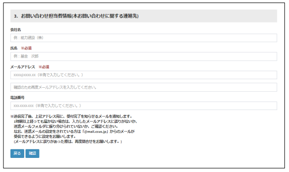 3.最後にお問い合わせ担当者情報(本お問い合わせに関する連絡先)を記載。